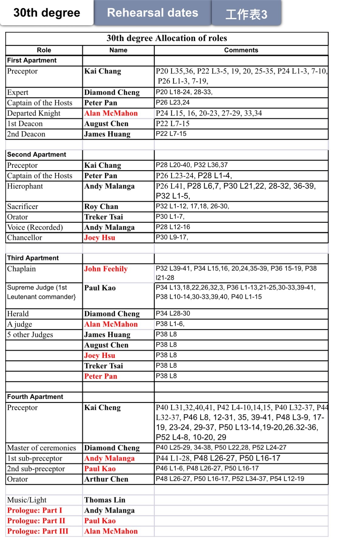 30th, and 32nd Degree Rehearsals on September 14 and 22, 2024